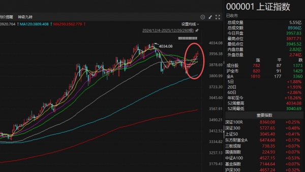 今日,A股市场上演惊魂逆转大戏,在盘中两度跳水的重压下仍霸气守住8连阳,成为全天市场的核心看点。早盘时段,市场延续近期回暖态势,三大指数小幅冲高后随即快速回落;临近午盘,卖盘集中涌现引发集体跳水,指数瞬间翻绿,超3900只个股同步走弱。不过市场韧性凸显,午后情绪迅速回暖,封板率显著回升,指数强势翻红收复失地。尾盘阶段,卖压再度袭来,指数短暂翻绿,但多头随即发力展开反击,最终三大指数均以红盘报收,成功延续连阳走势。