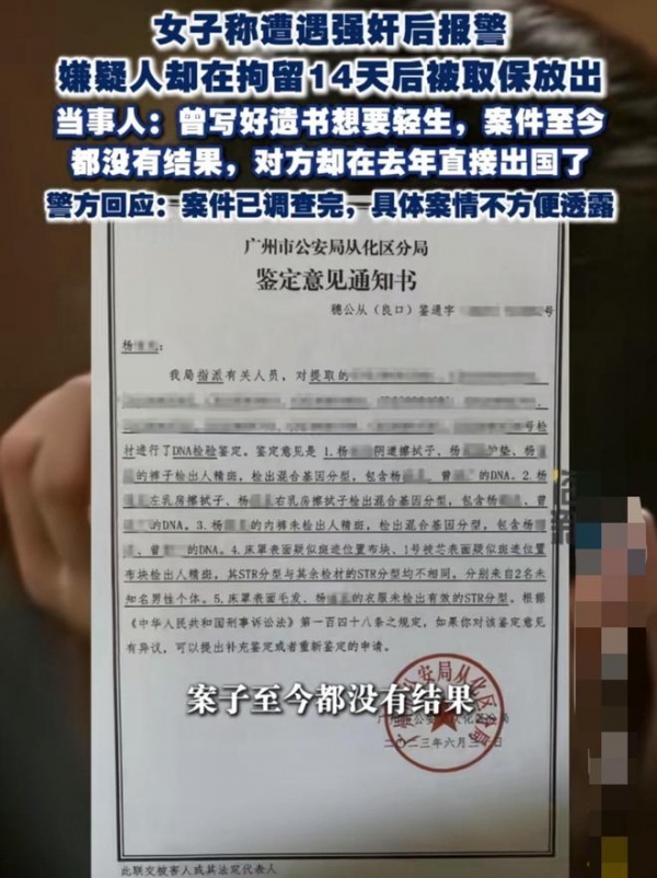 最近,广州一名女子的实名举报在网上掀起了巨浪。事情的时间线拉得很长,也很折磨人。2023年6月,她报警称遭遇强奸,警方也确实立案了,嫌疑人也被拘留了14天。