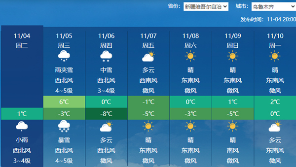像乌鲁木齐,雨雪相态复杂,今天晚上开始下雨,之后随着气温下降逐步转雪,明天将是雨雪混杂转暴雪的天气,6日降雪将减弱并且逐步停止,降水将持续近48小时。