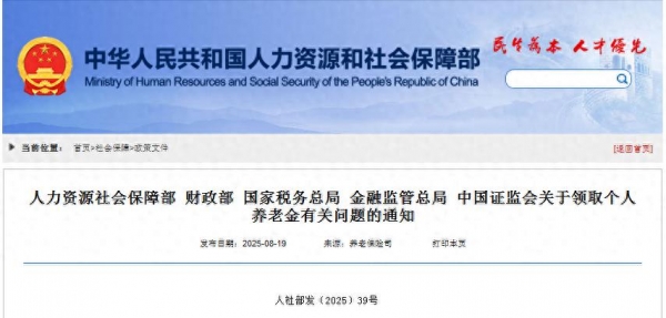8月19日,人力资源社会保障部等五部门发布《关于领取个人养老金有关问题的通知》。