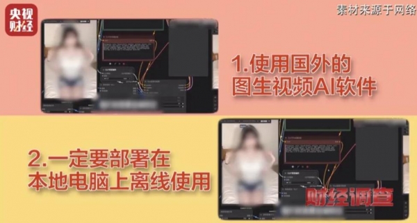更离谱的是这些教程不光教人造黄,还刻意引导用户规避监管,比如教大家使用境外的图生视频AI软件,还有更隐蔽的,让用户把程序部署在本地电脑上,离线运行。