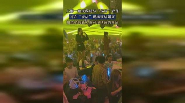 11月4日,上海,据报道,黄浦区民政局与INS新乐园联手,于11月14日至11月22日每周五周六(即11月14日、11月15日、11月21日、11月22日),推出夜间结婚颁证体验项目,颁证服务在INS新乐园举行。上海一夜店可现场登记结婚冲上热搜,引发舆论关注。