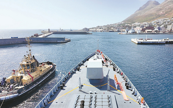 唐山舰靠泊南非西蒙斯敦港。 中国军网