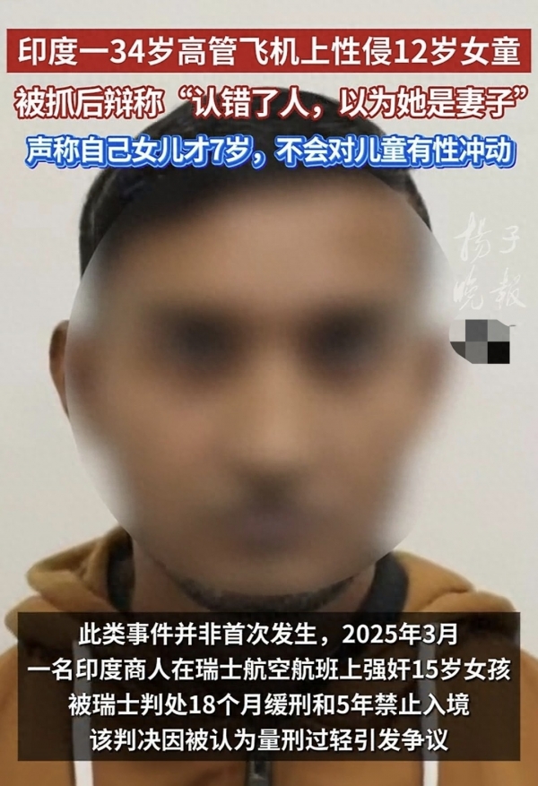 昨晚翻新闻时,看到一条让人脊背发凉的判决--一个印度高管在飞机上性侵12岁女童,竟狡辩"把她错认成妻子"。更讽刺的是,这类"空中犯罪"近年屡见不鲜。
