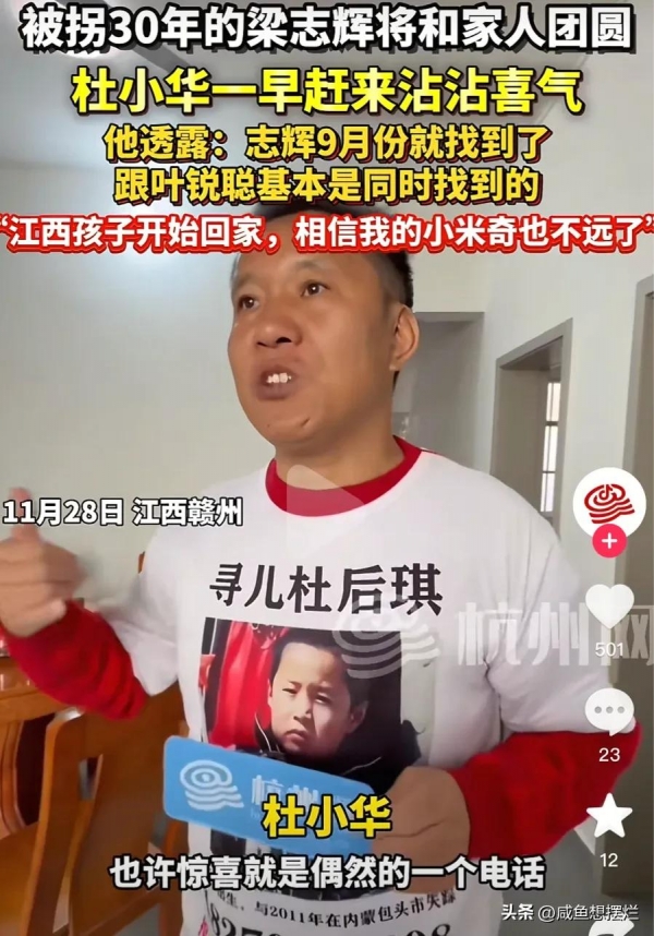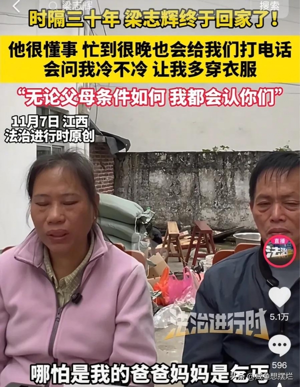 今年10月28日,梁三寿终于在社交平台官宣寻子成功,还将网名改为"梁志辉爸爸成功上岸"。