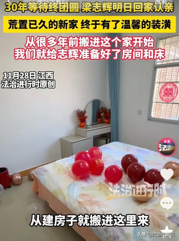 29日,被拐30年的梁志辉就要回家了,江西赣州于都县罗坳镇的梁家老屋里,已经挤满了前来道喜的人。