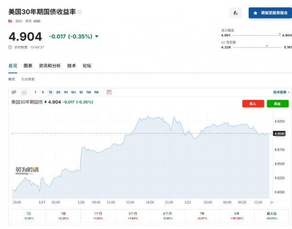 与此同时,随着投资者涌向避险资产,30年期美债收益率小幅下滑至4.9%,而此前受关税威胁重创的欧美股市则继续承压。