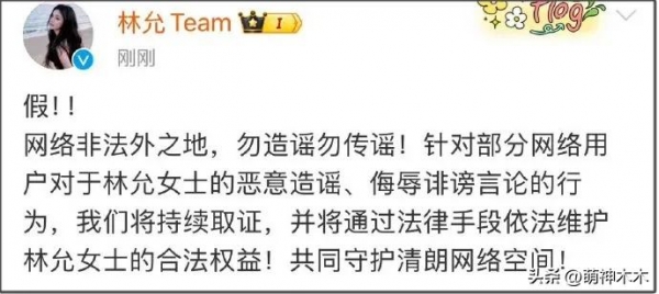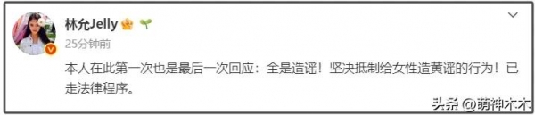 如今被质疑怀孕,林允还是没有明确谣言范畴,只表示是"第一次也是最后一次回应,全是造谣,坚决抵制给女性造黄谣的行为",并声称已经走法律程序。