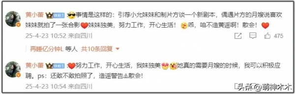而演员黄小蕾也在林允评论区帮忙澄清,再次解释来龙去脉。她称源头是自己引荐林允和制片方谈新剧本,偶遇片方的月嫂说喜欢林允就拍了一张。重申林允独美,若需要月嫂自己积极应聘,再次警告造谣的人。
