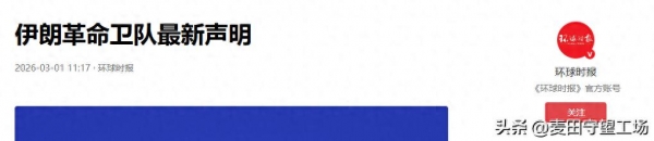 伊朗最高领袖哈梅内伊死讯被证实后,最为精锐的革命卫队在2026年3月1日已经表态:"伊斯兰共和国历史上最猛烈的进攻行动随时可能开始",此举是对以色列和美国空袭伊朗的报复性行动。
