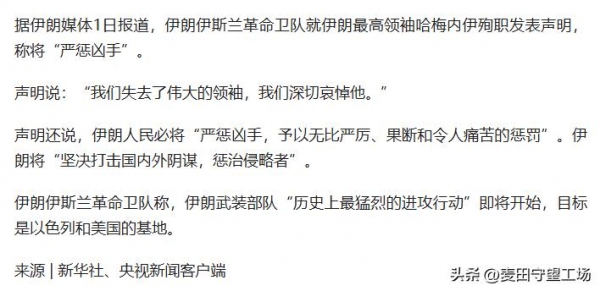 伊朗革命卫队发布声明:要求最猛烈进攻