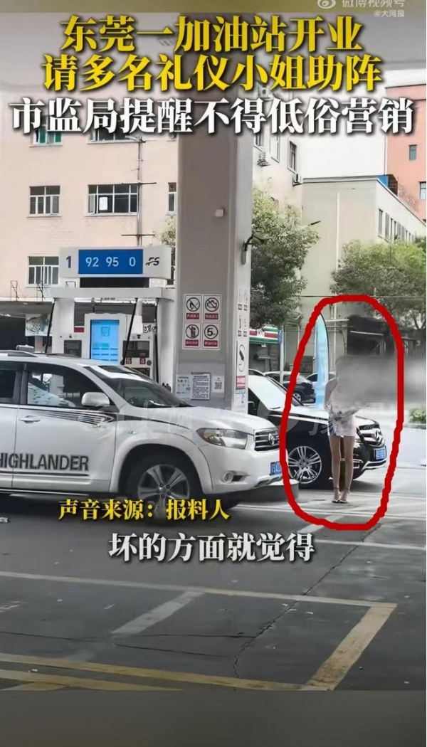 2026年4月1日,广东东莞一家新开业的加油站为快速聚集人气、提升客流,别出心裁地邀请多名身穿紧身短裙的模特到场站台,试图通过"美女营销"的方式制造话题、实现引流造势。相关现场画面在网络平台传播后,迅速引发了广泛关注,网友的讨论也随之发酵。面对这一情况,东莞市市场监督管理局樟木头分局第一时间介入调查,依据《中华人民共和国广告法》相关规定,明确指出此类促销活动必须符合法律要求,严禁出现低俗、违背公序良俗的行为,当即责令该加油站限期整改。尽管有部分媒体表示现场视频存在一定解读偏差,但监管部门仍坚持以规范经营为前提,要求加油站坚守社会风尚底线,杜绝任何突破公序良俗的营销行为。