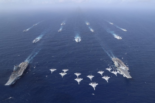 从中国空军出动战斗机型号来看,此次没有出动歼 - 20隐身战斗机,而是依靠歼 - 16重型战斗机的远程打击能力进行超距离空战。歼 - 16重型战斗机配备了霹雳 - 10、12、15、17等多种空空导弹,射程从10公里到300公里不等,在南海上空中国主场作战的情况下,只要掌握到美军F - 35C、F - 18舰载机的飞行动向,就可以完成对美军舰载机部队的超视距空战打击。如果双方飞行距离更近,歼 - 16重型战斗机还可以预备霹雳 - 10格斗空空导弹(射程20公里),展现出强大的作战灵活性。