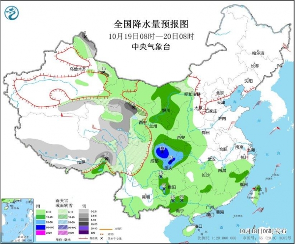就在北方经历寒潮洗礼的同时,南方多地却在经历着另一番"湿漉漉"的天气。最新天气预报显示,10月19日,四川、重庆等部分地区将迎来暴雨,降雨量可达50~90毫米。此外,内蒙古西部、西北地区东部、四川盆地、贵州中西部、福建北部、广西中西部等地也将出现中到大雨天气。