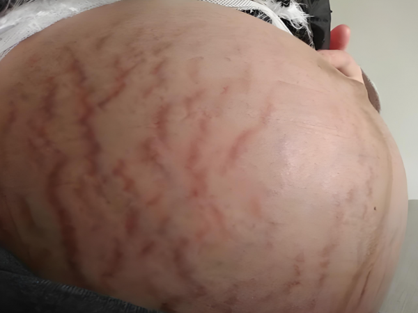 这些萎缩纹的出现,主要是因为在孕期,随着宝宝在妈妈肚子里一天天长大,妈妈的子宫也会越来越大。