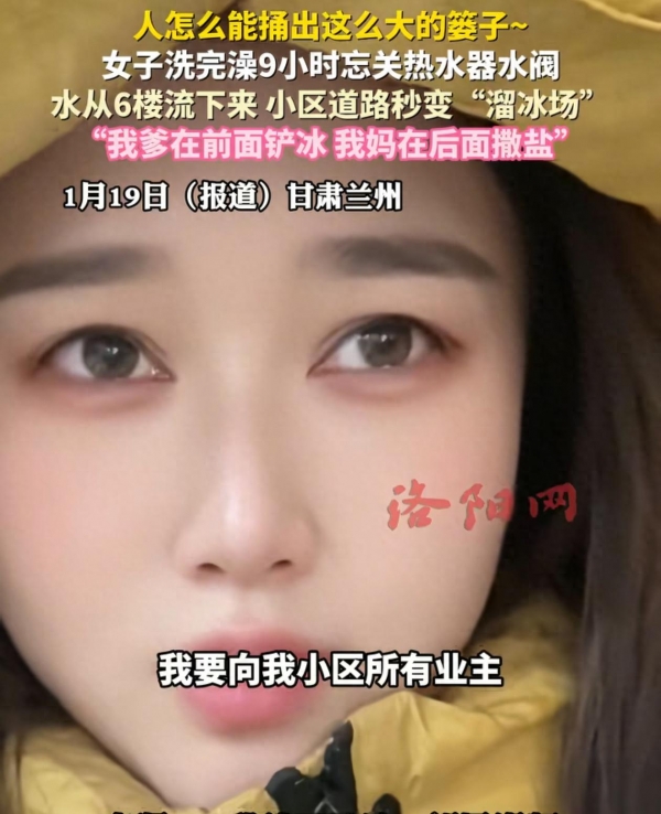 近日,在甘肃兰州有一位女子在洗澡后,忘记关掉太阳能的水阀,让水流了9小时,水都从6楼流了下来,小区直接变成"溜冰场",其父亲早起锻炼才发现了,这件事引起了广泛社会关注。