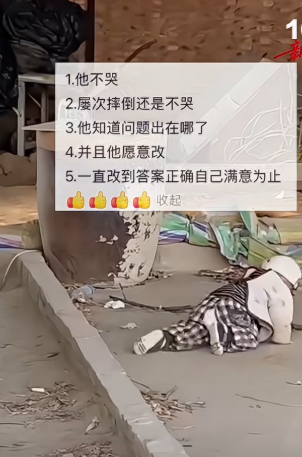 最近,一段"人类幼崽闯关"的视频火了。没有华丽特效,没有煽情配乐,只有一个刚学会走路的小萌娃,面对眼前的"人生第一道坎",一次次摔倒、一次次爬起,全程不哭不闹,最终稳稳跨过。