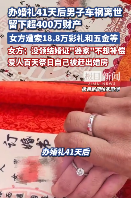 婆家说,曾提过补30万,是张晓抱着遗像拿喇叭闹事,逼得他们打官司;张晓说,30万只是口头话,婆家反倒起诉她,要退18.8万"彩礼"+红包,合计近50万。