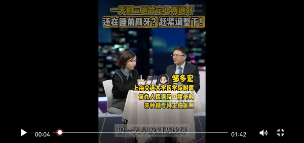 从小爸妈总喊着"睡前刷牙",这观念怕是得改改了。上海交通大学医学院附属第九人民医院口腔外科牙种植专科主任医师邹多宏近日走进上观直播间,抛出一个颠覆常识的观点:晚饭后立马刷,比熬到睡前再刷更护牙。从小爸妈总喊着"睡前刷牙",这观念怕是得改改了。上海交通大学医学院附属第九人民医院口腔外科牙种植专科主任医师邹多宏近日走进上观直播间,抛出一个颠覆常识的观点:晚饭立马刷,比熬到睡前再刷更护牙。