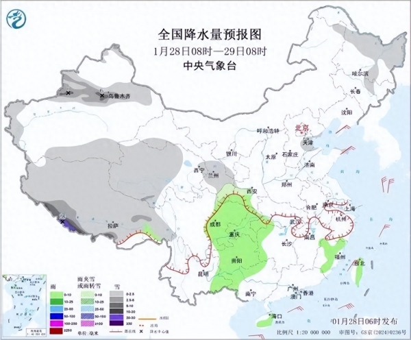 具体预报来看,今天白天至夜间,新疆伊犁河谷高海拔地区、西藏南部等地部分地区有大到暴雪,西藏西南部沿山地区有大暴雪(20~28毫米)。明天,雨雪天气将自西向东全面铺开,西藏东北部、陕西中部、山西南部、河南西部、湖北西北部等地部分地区有大到暴雪;陕西东南部、湖北西部部分地区有冻雨。后天,雨雪集中区略有南压,河南南部、湖北西北部、川西高原北部等地部分地区有大雪;江南、西南地区东部、华南等地部分地区有小到中雨。