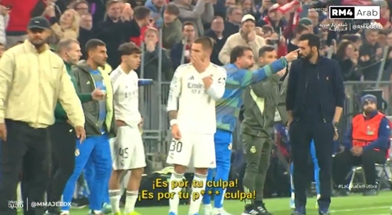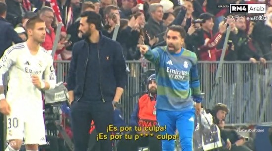 DAZN根据Movistar+的镜头捕捉到,卡瓦哈尔当时不停的手指裁判一遍爆粗:"这是你的错,这他X的全是你的错!"