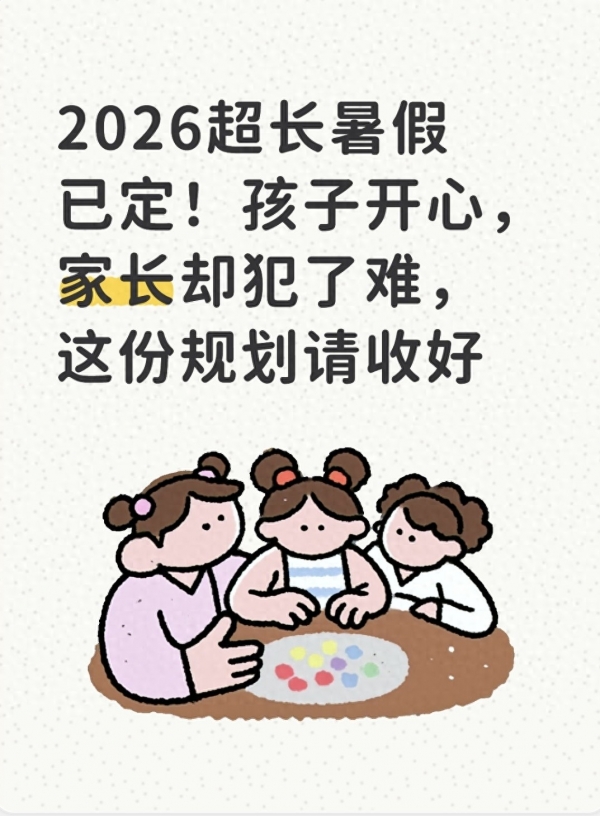 2026年超长暑假是特殊年份的正常安排,不是负担,而是难得的亲子陪伴、孩子成长的机会。家长不用焦虑、不用攀比,按照"三阶段"做好规划,选对托管、抓好安全、理性消费,孩子能过一个快乐又充实的假期,家长也能少操心、少花钱。
