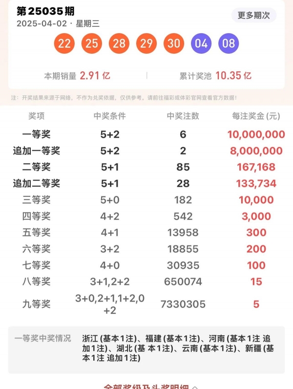 这种套餐包含8注单式加1注7+2复式,人家就是靠复式票包圆了前区22、25、28、29、30和后区04、08,把奖池掏了个底朝天。