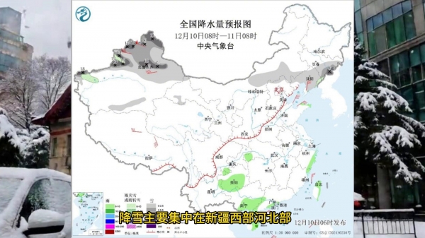 具体时间线如下:10至11日降雪主要集中在新疆西部、河北部、内蒙古中部、东北地区东南部等地。其中新疆阿勒泰、塔城、伊犁河谷及吉林东部等地部分地区有大到暴雪10-18毫米,寒意与积雪将迅速叠加。