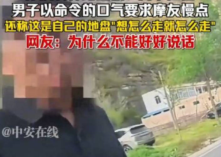 一段男子拦停摩友的视频在网上传开,看着让人心里挺不是滋味。事情发生在一段乡村或是城郊的道路上,几名摩友正常骑车行驶,一名男子径直上前把车拦了下来,开口就让摩友把车速放慢,还语气强硬地说这是自己的地盘。