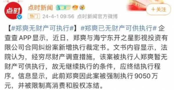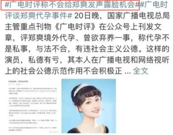 随后,在广电的表态下,郑爽一夜之间从顶流小花沦为"劣迹艺人"。