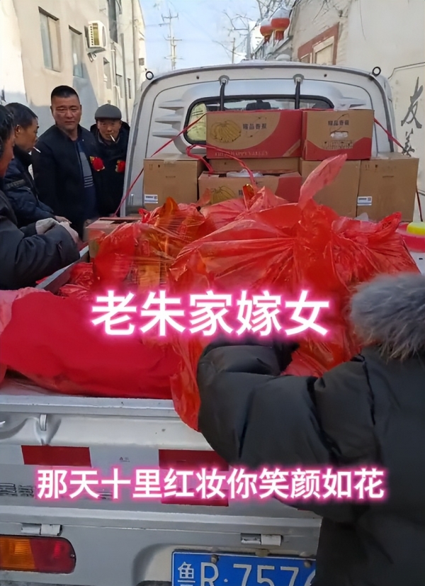院子里还整齐摆放着女方的丰厚嫁妆,光是崭新的行李箱就备了两个,陪嫁的被褥更是多达数床。