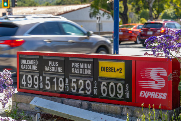 当地时间2026年3月14日,美国加利福尼亚州,油价显示牌。 IC Photo