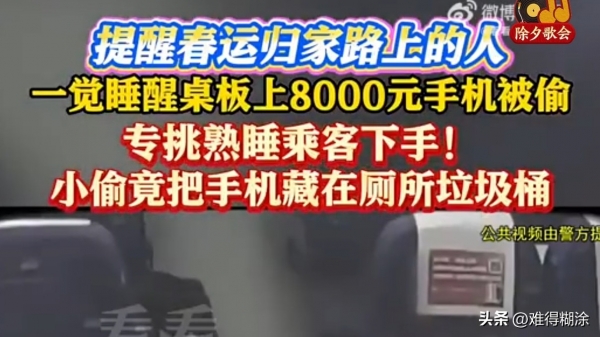 "火车睡一觉,8000元手机变'厕所藏品'!"女子熟睡被偷,小偷藏机手法惊呆乘警