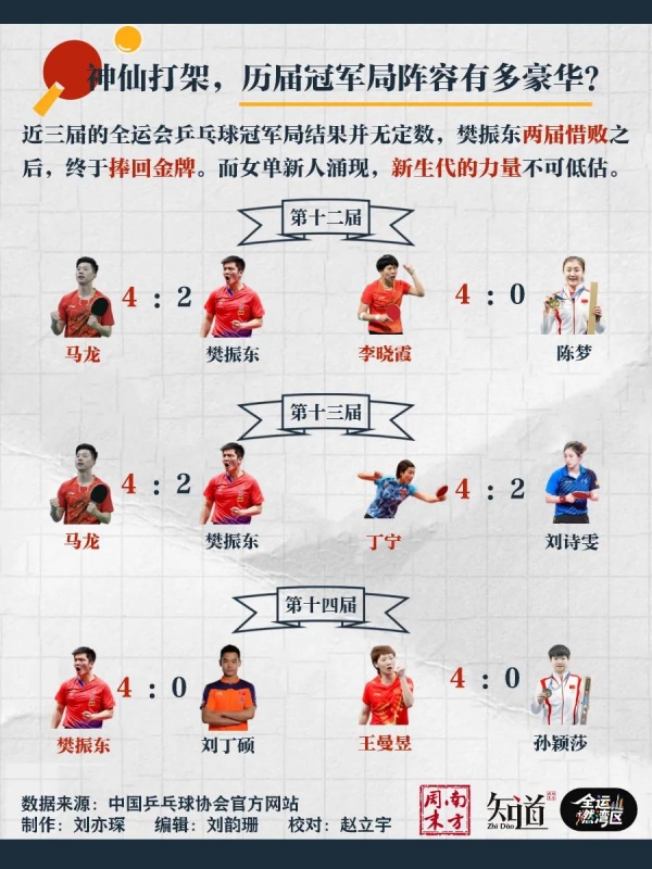 回顾近几届全运会,更能看出乒乓球冠军争夺的波诡云谲。