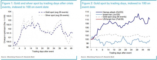 首先,在冲突爆发及股市波动率飙升初期,黄金会被卷入抛售一切的去杠杆浪潮,投资者往往抛售黄金以补充保证金,充当流动性来源。当恐慌指数大幅飙升,投资者面临保证金压力、在险价值(VaR)冲击和投资组合再平衡需求时,会优先抛售流动性较好的资产以筹集现金。黄金由于流动性极高,往往成为首选抛售对象。