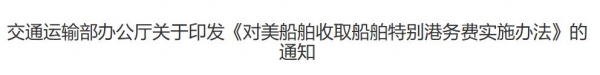 【中国交通运输部发布《对美船舶收取船舶特别港务费实施办法》】