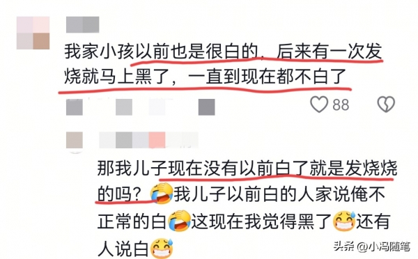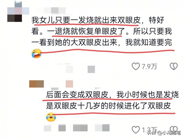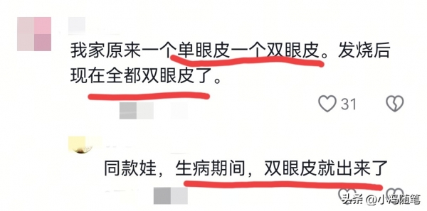 除此之外,小编还在评论区发现一个现象,很多人提及,孩子发烧就会变成双眼皮,所以一看到孩子双眼皮就知道情况不妙了。