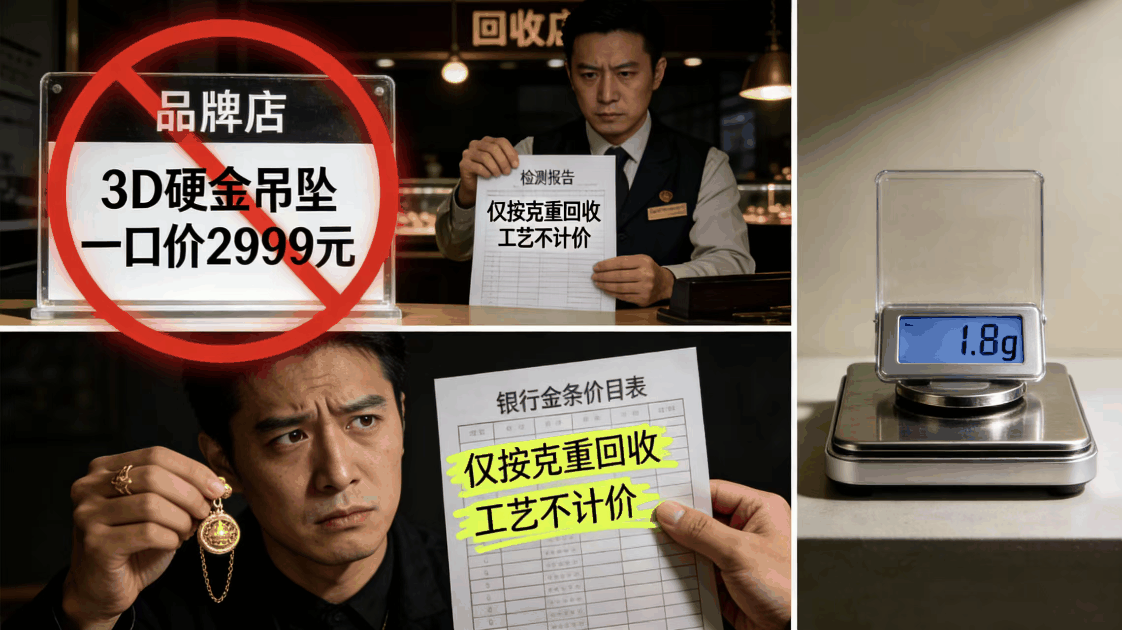 金条,投资品,价格跟着金价走,溢价少,大概1%到3%,标准化产品,没有品牌溢价,没有工艺成本,想卖也容易,按金价回收,方便的很,金饰就不一样了,消费品,包含了品牌,工艺,租金,营销,各种成本,15%到25%,钱都花在这里了,溢价高,什么3D硬金,古法金,工艺费高的吓人,回收的时候,只看黄金纯度,重量,品牌,工艺,一分钱不值,亏大了,很多人不懂。