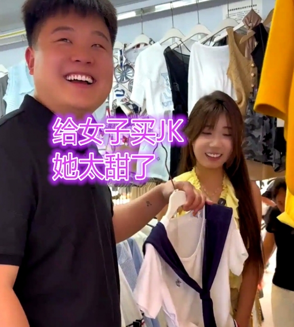 接着两人去逛街,这妹子可真捧场啊,一路上嘴巴没停过,"哥哥,你咋么那么好呢?"、"哥哥,你真成熟大方!"搞得小伙心里乐开了花,嘴上还说"不晓得啥好处,就想着多买点让妹子高兴!"到了服装店,小伙直接挑了套JK制服,给妹子试穿,结果人家妹子不好意思,说"我平常都穿得挺保守,JK我还真没试过,穿上给谁看嘛?"小伙一听赶紧说"下次见面穿给我看,我喜欢!"这话一出口,妹子脸都红了,连声说"哥哥真的好宠我哦。"