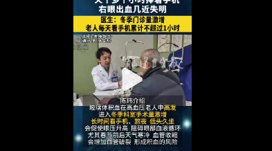 75岁老人因沉迷观看短剧导致右眼出血,已接近失明,医生紧急提醒:患有高血压的老年人尤其需警惕,长时间使用手机可能引发玻璃体积血,严重可致永久视力损伤。