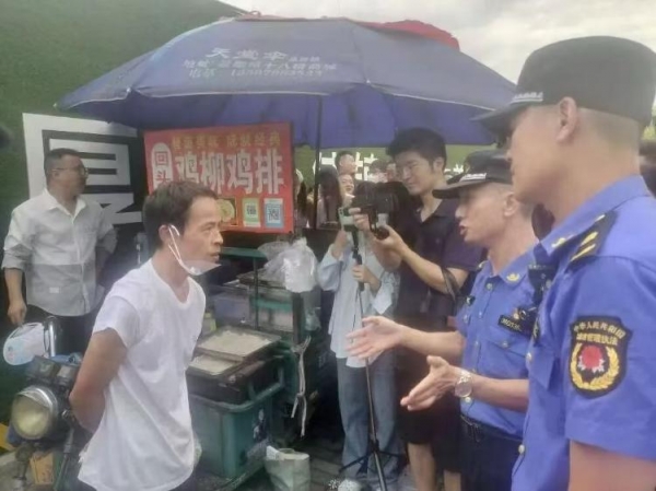 昌江区城管局执法人员现场指导"鸡排哥"规范设摊。 图据昌江区城管局