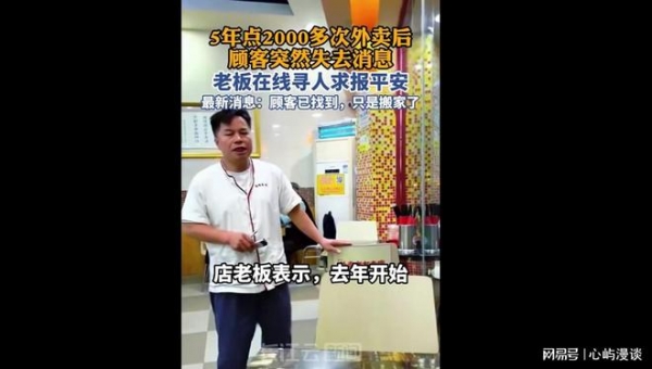 好消息很快传来。2026年2月13日,餐饮品牌负责人陈宇鸣确认:人找到了!那位顾客通过平台客服回应,说自己去年搬家了,新住处离店太远,自然就没再点单。他还特意感谢吴老板和大家的关心,并表示"一切都好,请放心"。
