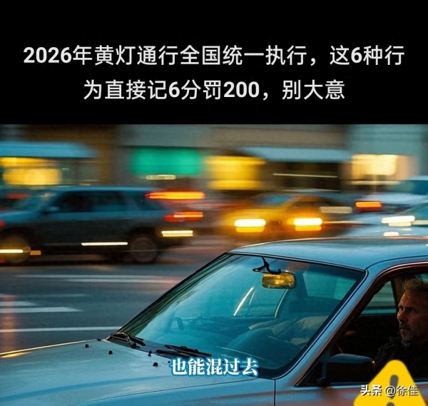2026年起,黄灯通行终于全国统一执行了!以前有的地方只警告、有的罚款不记分,现在只要碰了这6种行为,直接记6分、罚200元,和闯红灯一个标准。