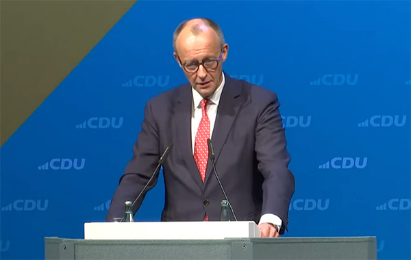 当地时间2月18日,默茨在基督教民主联盟举办的圣灰星期三集会活动上发表讲话。 视频截图