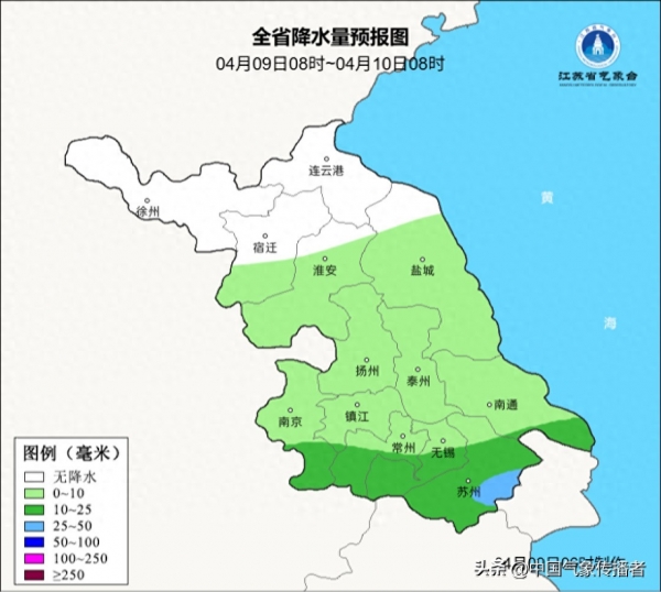 - 气温:沿江苏南最高25-26℃,其余地区24℃左右;最低温苏北10℃,苏南15-16℃。