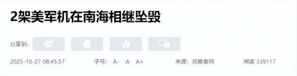 这不是美军军机第一次在南海坠毁或落海了。此前美军最先进的舰载机F-35C,在 "卡尔・文森" 号航母降落时失控,撞穿甲板后坠入南海,事故导致 7 名舰员受伤。