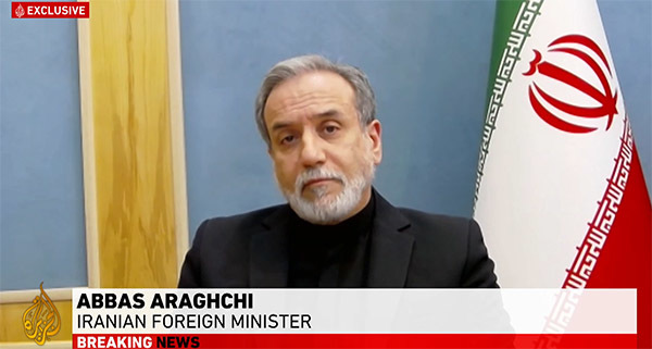伊朗外交部长阿拉格齐接受卡塔尔半岛电视台采访 视频截图