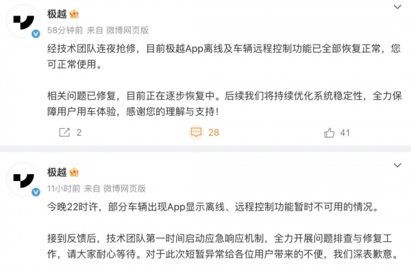 对此,极越汽车官方回应称,技术团队已第一时间启动应急响应机制,全力进行问题排查与修复。截至11月24日上午,官方表示相关问题已修复。