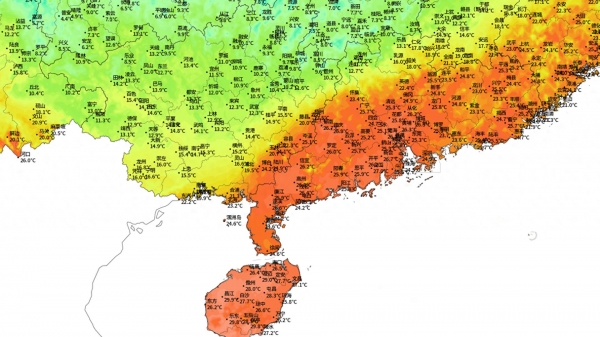 最气气温10度线今天已经来到了来宾-梧州-清远-河源一线。华南各地的气温再也没有了昨天那暖如初夏般的温暖,各地气温逐渐探底,午后的气温不但没能回升,反而下降的更厉害。预计到了26日和27日一早,华南除沿海外,大部分地区都会跌到个位数。最低气温0度线将会南下到江西的中北部、福建北部和浙江南部一带,广东和广西的内陆地区,气温将会全部跌破10度。