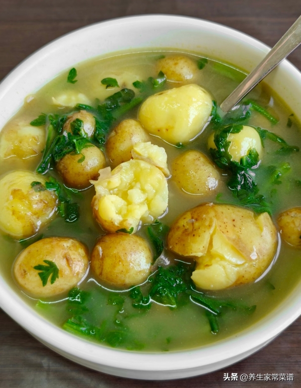 汤味清甜鲜香,茼蒿脆嫩,小土豆粉糯,喝着暖乎乎的,喉咙瞬间舒服不少。汤水清爽不厚重,能帮着给身体补点水分,还能促进肠胃动一动,排便更顺畅,不管是晚餐喝一碗,还是给孩子、老人做辅食,都特别合适,秋冬干燥天喝着太养人了。